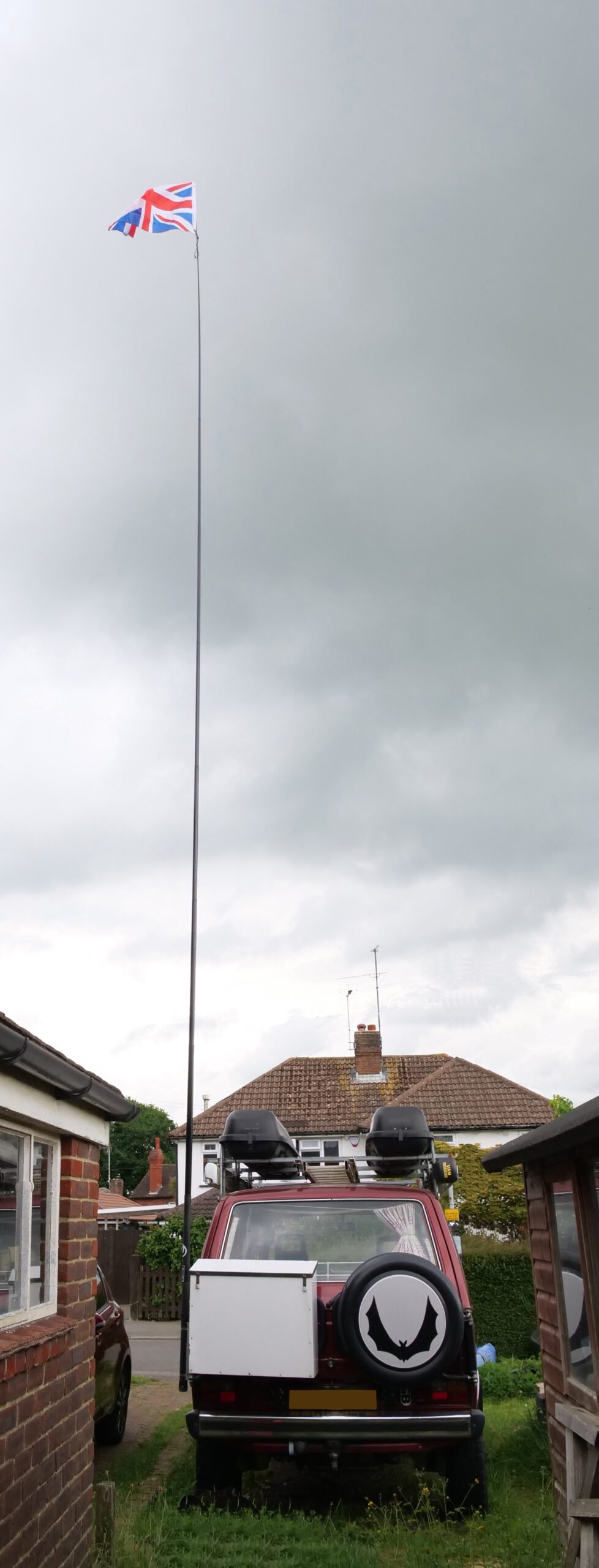 Short ridged flag poles for the CB aerial sockets at the font, (with internal CB aerials).